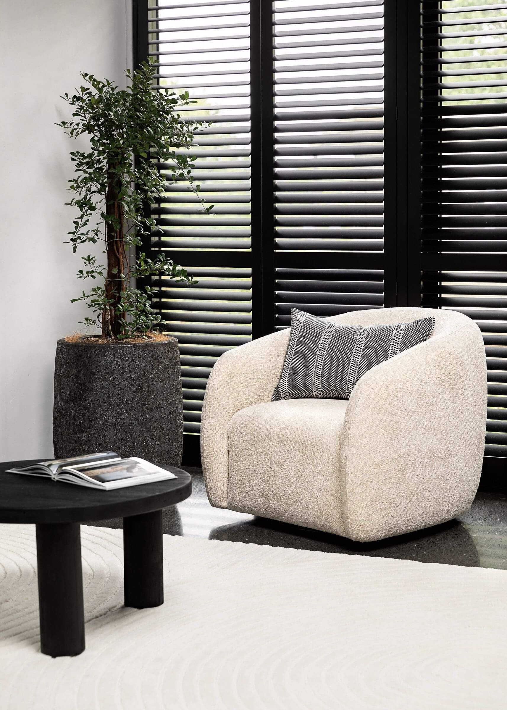 The Max Swivel Chair is the right combination of curves, comfort and good looks. Feel embraced by the higher back, tapered arms and generous seating, all highlighted by the textured fabric available in three versatile colour options.