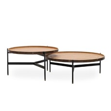 Our Jace table has a oak veneer top with a black powder coated steel base. The round top makes it perfect for smaller spaces and the popular choice to fit neatly over your sofa. Available in different finishes and also as a coffee table.