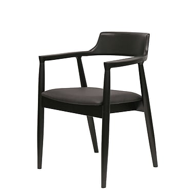 Our Ealing dining chair showcases a carefully curved back which transitions easily into armrests and a black leather seat ensures comfort for many hours.