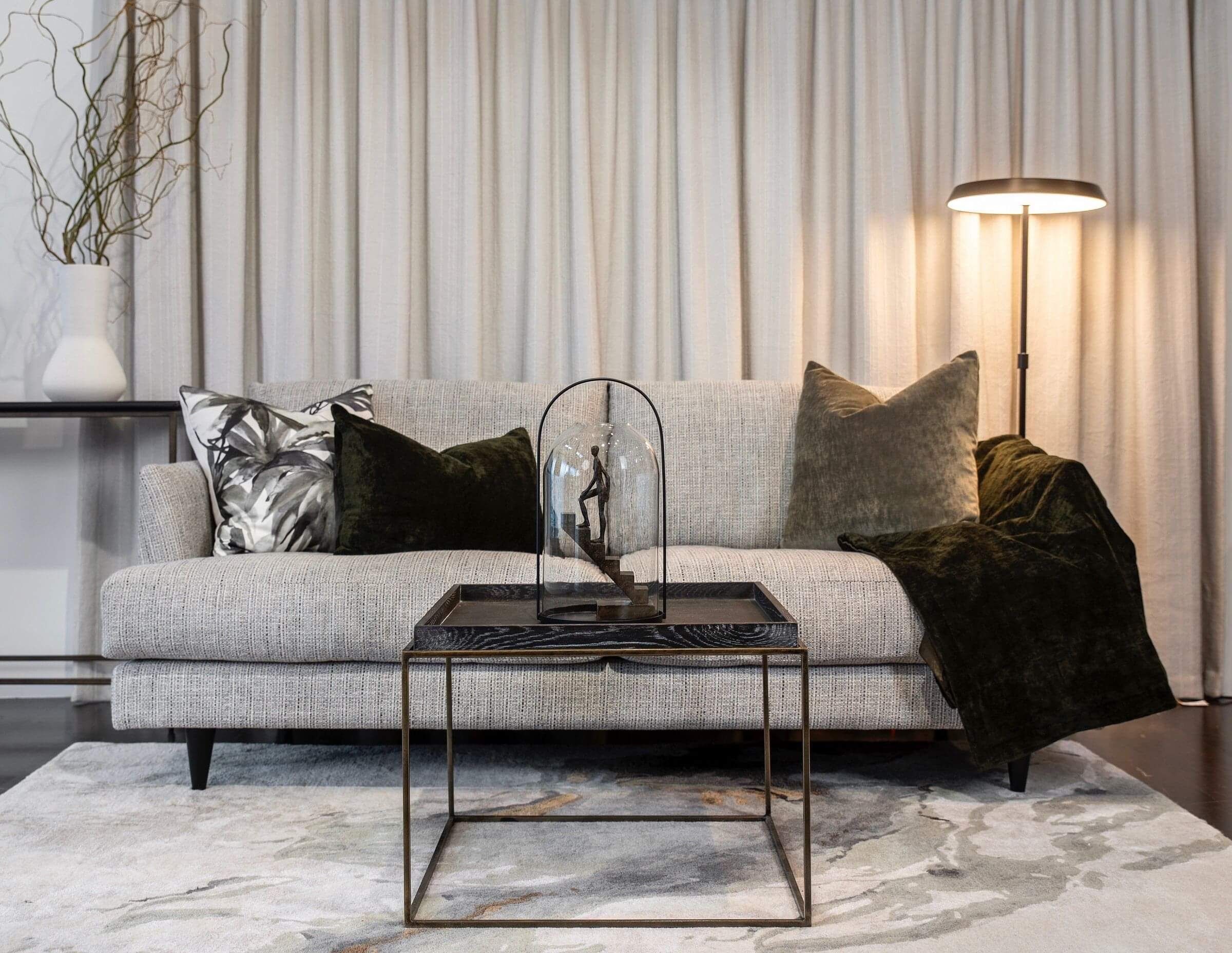An architectural design with a full black steel base; the Aline sofa ticks all the boxes from every angle.